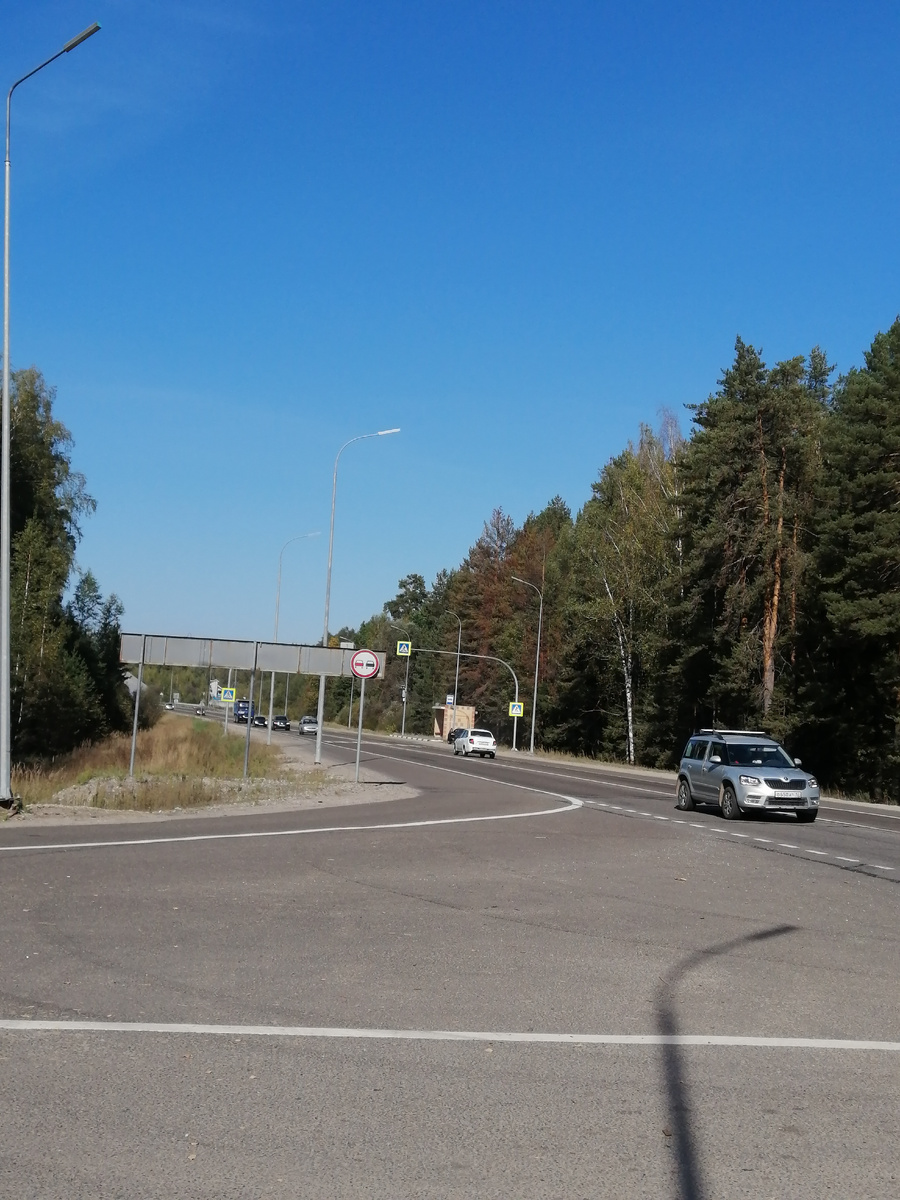 Стою у машины, выглядываю свой автобус, а он вот, он из Куяра на светофоре выезжает на трассу.