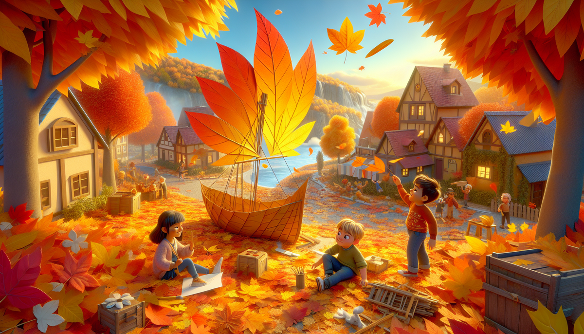 В маленьком городе, в самом сердце осени, жили-были три друга: Петя, Маша и Ваня. Осень накрыла землю яркими цветами, и дети каждый день собирали красивые желтые, красные и оранжевые листья. Однажды, сидя на скамейке, они заметили, как листья кружатся в воздухе, словно маленькие лодочки. "Потому что они мечтают о море!" – заметила Маша. "Пойдем построим свой собственный летучий корабль из листьев!" – предложил Ваня. Петя, который всегда любил рисовать, сразу начал представлять, как будет выглядеть их корабль. "Мы сделаем его большим и красивым, и отправимся в страну, где всегда лето!" Друзья решили собрать как можно больше листьев. Они бегали по парку и собирали все, что могло пригодиться: листочки, палочки и даже мелкие камешки. Наконец, они решили, что листья готовы, и сели строить. "Мне кажется, нам нужно сделать каркас из веточек!" – сказала Маша, и ребята начали соединять палочки. "Я сделаю паруса из самых больших листьев!" – закричал Ваня, дружно помогая своими руками. А Петя нач