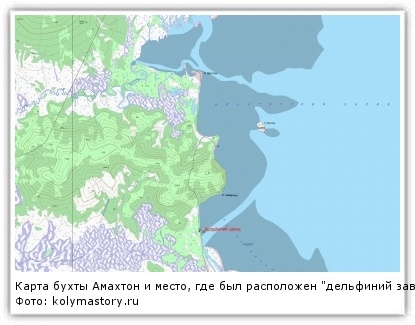 На побережье Охотского моря между посёлками Балаганным и бывшим посёлком Амахтон на берегу бухты Амахтон сохранились развалины и остатки зданий от небольшого поселения. Старожилы могут вам сказать и название этого места — "дельфиний завод".