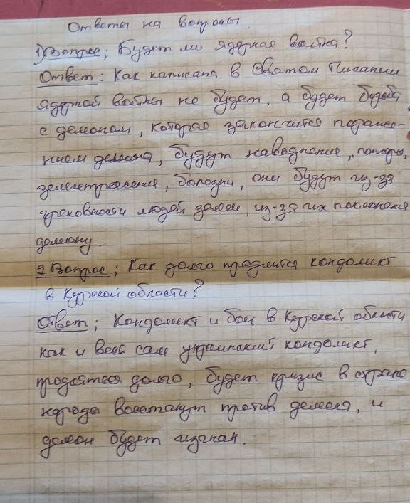 1. Будет ли ядерная война? 2.Как долго продлится конфликт в Курской области? Вопросы Александру Габышеву от зрителей и читателей. Ответы: 1. Как написано в Святом Писании, ядерной войны не будет, а будет борьба с демоном, которая закончится поражением демона. Будут наводнения, пожары, землетрясения, болезни. Они будут из-за греховности людей злом, из-за их поклонения демону. 2.Конфликт и бои в Курской области, как и весь сам украинский конфликт, продлятся долго. Будет кризис в стране, народы восстанут против демона, и демон будет изгнан.