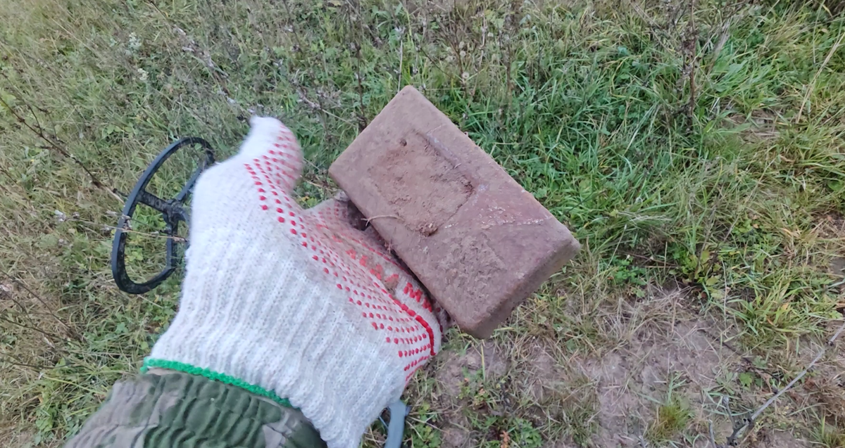 Там был летний выпас и скотина подъела всю траву. Естественно, всем этим делом воспользовались соратники - коллеги. Пару фундаментов начали шурфить, отбрасывая все железное. Грех не воспользоваться таким подарком: