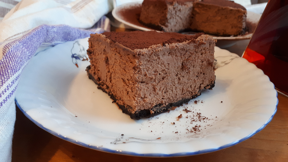 Предлагаю вашему вниманию превосходный шоколадный чизкейк, приготовленный из сливочного крем-сыра и растопленного шоколада, посыпанный какао. Такие десерты можно встретить в любой кофейне. Но что, если вы приготовите такой чизкейк своей "любимой половинке" на какой-нибудь праздник. Он получается всегда, ингредиентов надо не так много, и это проще, чем вы думаете! Приготовив по этому рецепту один раз, вы так и будете по нему готовить, настолько вкусный чизкейк получается.