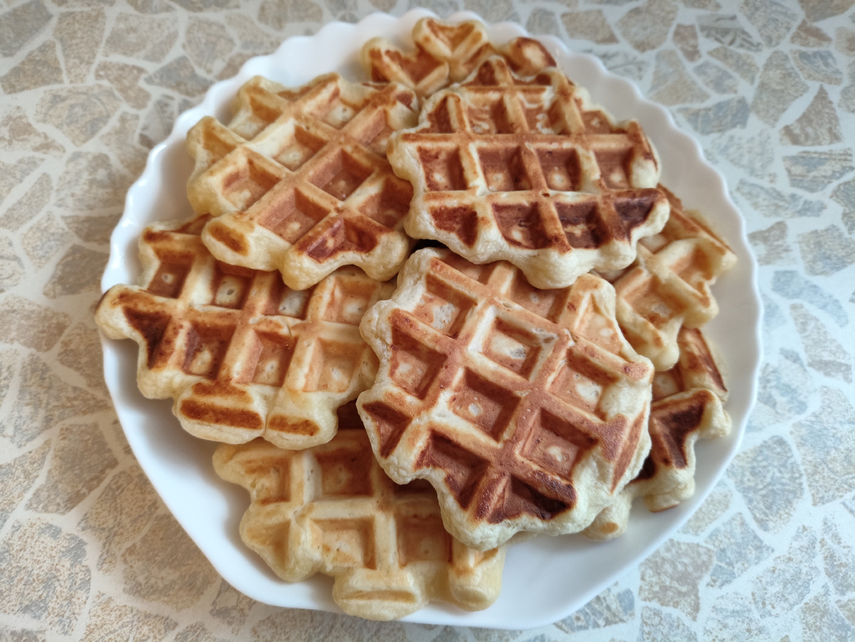 Доброго времени суток. Давайте приготовим сегодня творожные вафли. Они хорошо подходят на завтрак и в качестве перекуса на работу , в школу. Готовятся очень быстро, и получаются очень вкусные. И так.... Поехали... 180гр – творога 2 яйца 100 гр – молока 55 гр. – сахара 1 щепотка ванилина. 50 гр – растопленного сливочного масла 180гр – муки ½ ч.л. – разрыхлителя щепотка соли Творог, молоко, яйца, растопленное сливочное масло, сахар, ванильный экстракт, соль перемешиваем венчиком до объединения; Всыпаем муку, объединенную с разрыхлителем. Замешиваем однородное тесто без комочков; Жарим вафли по 6-7 минут в вафельнице, смазывая пластины растительным маслом. Вафли готовы, приятного аппетита .