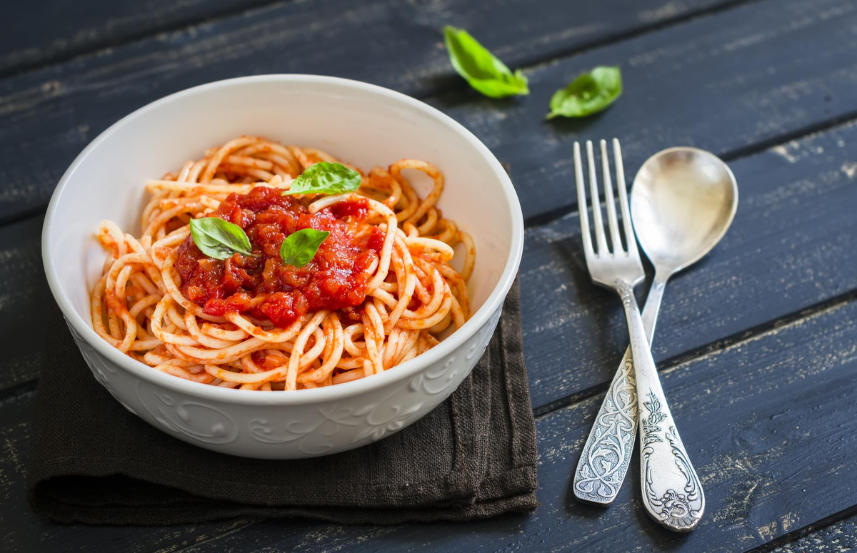 - 1. Паста с томатным соусом и базиликом Ингредиенты: · 400 г пасты (спагетти, пенне или другой сорт) · 800 г консервированных томатов · 2 зубчика чеснока · 50 мл оливкового масла · Соль, черный перец по вкусу ·Свежий базилик для подачи