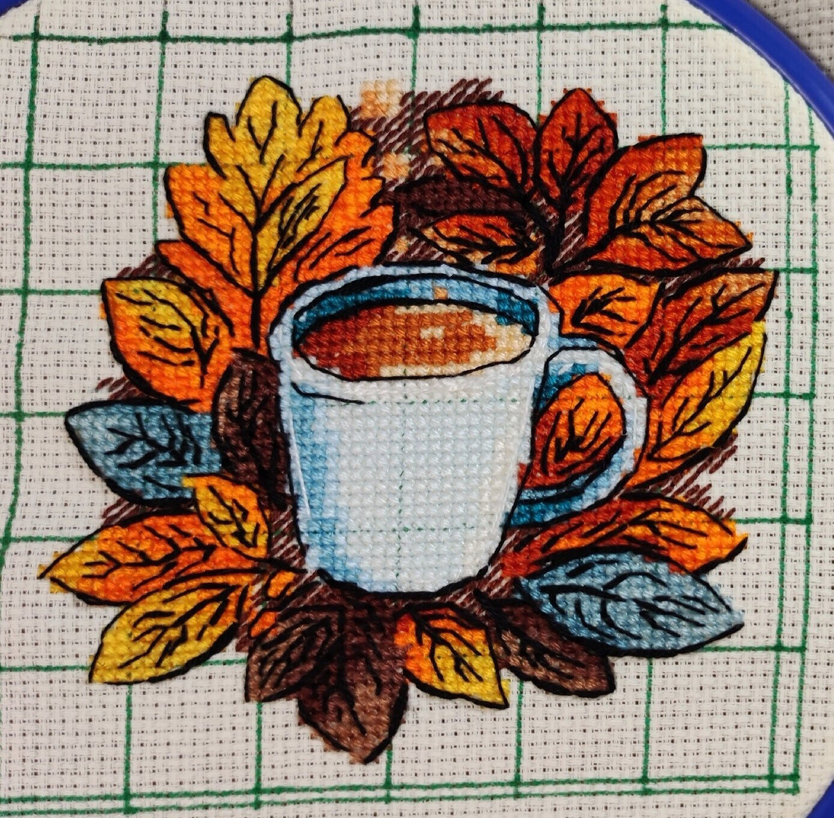 Эта неделя у меня была продуктивна на финиши! И так первый финиш на этой неделе, это "Осеннее кофе" авторская схема От https://vk.com/embroidery_matreshka
