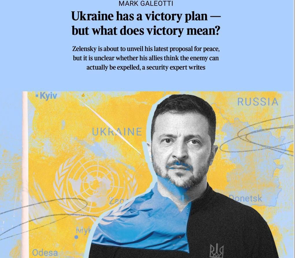 Позиционируемый в качестве «эксперта по безопасности» обозреватель The Sunday Times Марк Галеотти в своей свежей статье для этого британского издания размышляет на актуальную нынче тему, суть которой вынесена в заголовок: «У Украины есть план победы — но что означает победа?»