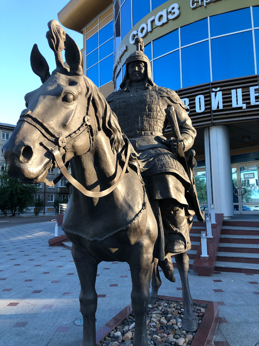 Не зная истории создания скульптурной группы, я подумала, что это Илья Муромец с картины Васнецова. Только конь под ним явно не богатырский. Значит, это монгольская порода, несмотря на небольшой рост порода очень вынослива и непривередлива.