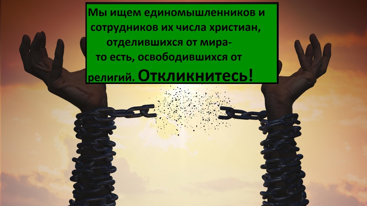 Мы ищем единомышленников и сотрудников из числа христиан, освободившихся от мира (от религий)