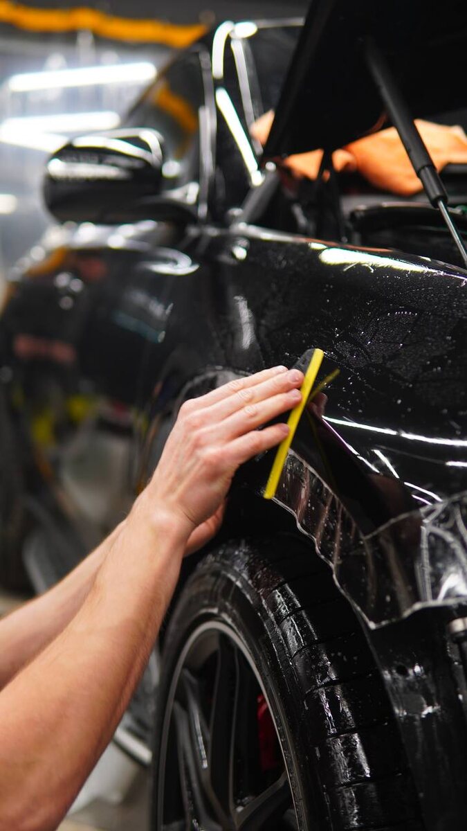 Наклеить защитную плёнку на автомобиль нелегко. Иногда новичкам приходится делать по 2–3 попытки с каждой кузовной панелью. Кроме того, вы рискуете повредить лакокрасочное покрытие. Поэтому начинающих сотрудников тюнинговых мастерских подпускают к машинам только через несколько месяцев практики.