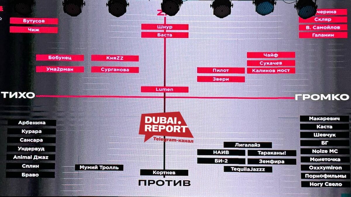 Бутусов Vs Шевчук. Таблица рок-звёзд, выступивших за и против СВО, от Михаила Козырева (иноагент), презентованная на гастролях в США
