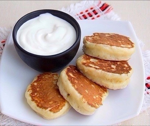 Ингредиенты: Мука – 350-400 г Яйцо – 1 шт. Молоко – 500 мл Дрожжи сухие – 1 ч. л. Сахар – 2-3 ст. л. Соль – 0,5 ч. л. Масло растительное для жарки Процесс приготовления: 1. Молоко подогрейте до теплого состояния и перелейте в большую миску. Добавьте 1 ложку сахара и дрожжи, перемешайте венчиком, накройте полотенцем и поставьте в теплое место на 10-15 минут. 2. Яйцо взбейте венчиком. Добавьте в молоко яйцо, соль, оставшийся сахар и муку. Хорошо перемешайте до получения однородного густого теста. 3. Накройте миску и оставьте на 1-1,5 часа, тесто за это время должно увеличиться вдвое. 4. Раскалите на сковороде растительное масло, выложите ложкой на сковороду оладьи и обжарьте их с двух сторон до готовности. Подавайте со сметаной или вареньем. Приятного аппетита!