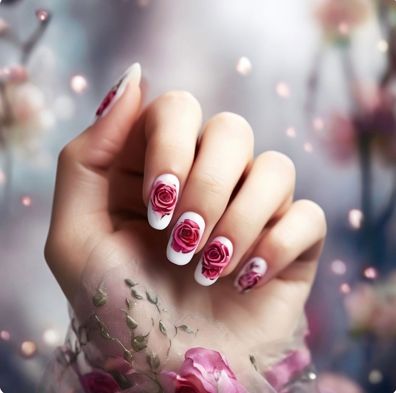 📸 *Пример*: Ногти с яркими розами на фоне светлого лака, будто вы только что собрали их в саду!
