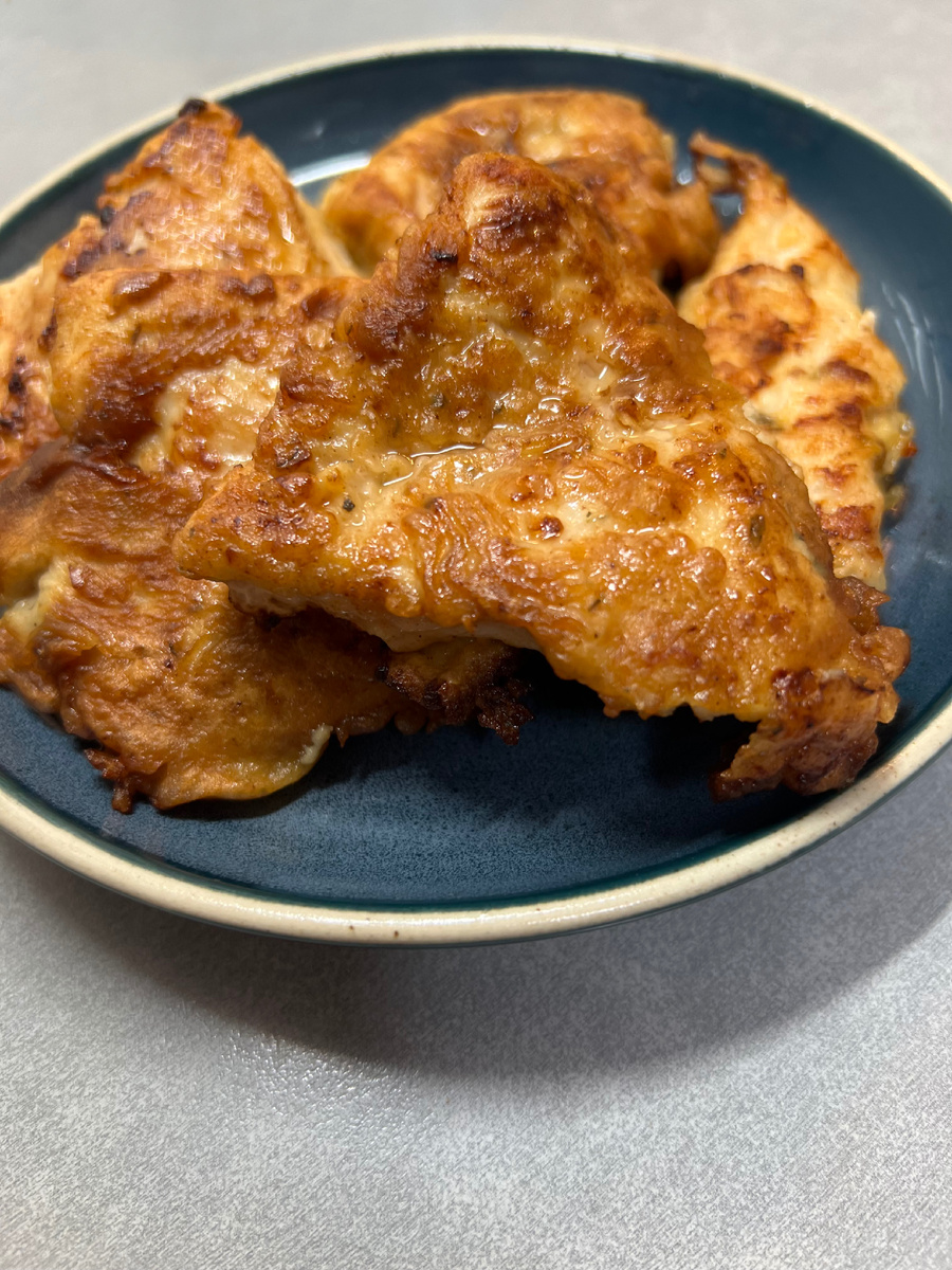 Такой простой, быстрый рецепт должен быть в копилочке у каждой хозяюшки. Сметанный кляр нежно обволакивает куриное филе, что все соки остаются внутри и курочка получается нежной и сочной. Филе необходимо нарезать вдоль на 2-3 части, как на фото. Посыпать солью и любимыми специями. Я использовала паприку и приправу для курицы. Это можно сделать с одной стороны. Для кляра соединить яйцо, сметану и муку. Добавить щепотку соли. Кляр должен стекать с вилки. Окунуть каждый кусочек куриного филе в кляр. Затем обжарить с двух сторон на растительном масле. После того как перевернули - накрыть крышкой . Приятного аппетита! Ингредиенты: