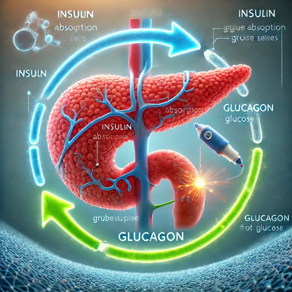 В предыдущей статье мы разобрали, как гормоны взаимодействуют с клетками через рецепторы и сигнальные пути, передавая сигналы, которые запускают сложные биохимические процессы внутри клеток. Теперь мы переходим к изучению ключевых гормонов, которые регулируют важные процессы в таблице. Начнем с гормонов, контролирующих уровень сахара в крови — инсулина и глюкагона. Что такое инсулин и глюкагон? Инсулин и глюкагон — это два гормона, которые обнаруживают поджелудочную железу и играют центральную роль в поддержании нормального уровня глюкозы в крови. Глюкоза — это основной источник энергии для организма, и ее уровень должен соблюдаться в рамках строгих норм. Инсулин и глюкагон работают как «противоположные партнеры»: инсулин снижает уровень сахара в крови, а затем глюкагон его повышает. Роль инсулина Инсулин выделяется поджелудочной железой в ответ на повышение уровня глюкозы в крови, например, после приема пищи. Основная функция инсулина — помочь клеткам организма снизить уровень глюко