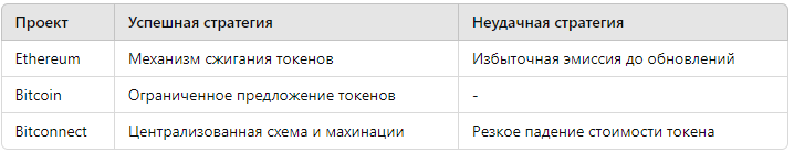 Как видно из примеров, проекты, где применялись долгосрочные и гибкие стратегии управления токенами, добились успеха, тогда как проекты, использовавшие спекулятивные схемы, потеряли доверие инвесторов.