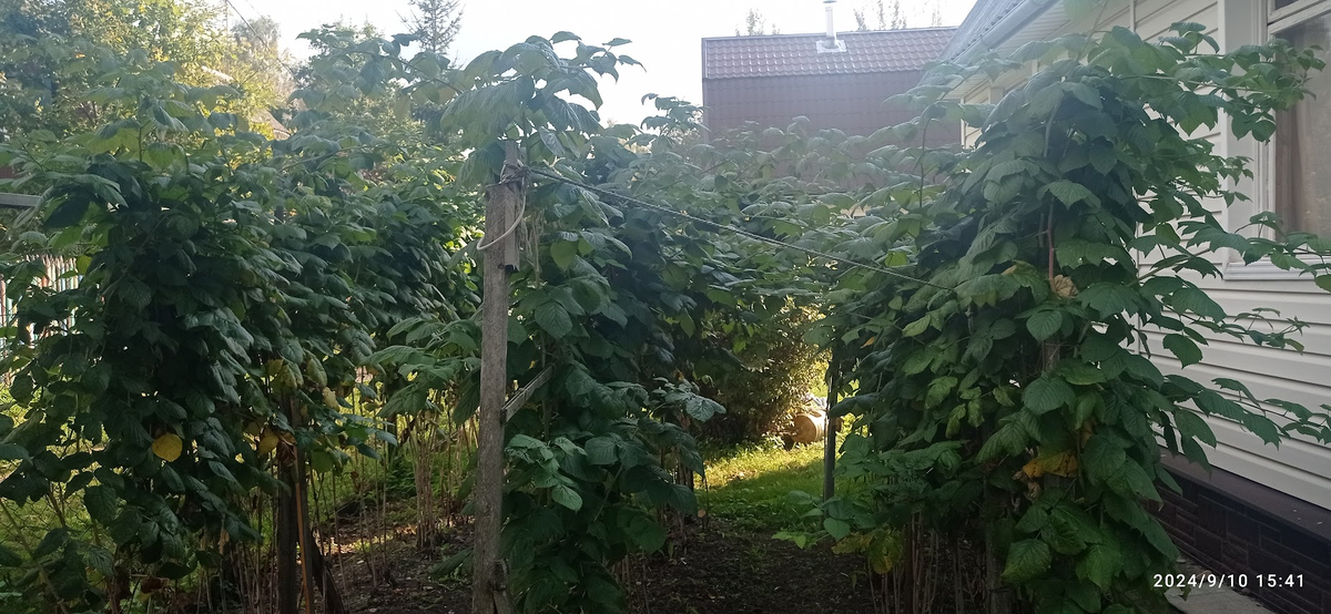 Теперь освещение. В идеале на открытой солнечной площади. Малина спокойно выдерживает и частичное затенение, главное, чтобы ряды были не прямо под деревьями. В таких местах она созревает позже, вкус ягод несколько более пресный, но ягоды крупнее. Так как обычно малину выращивают рядами, то направление их в идеале северо-восток - юго-запад. Возможны варианты. Я сейчас пишу, как надо правильно делать, но ни на каждом участке это получится. У меня направление север — юг. Не сажайте малину вдоль глухого металлического забора, отступите от него хотя бы метра на два. Можно посадить малину и непосредственно рядом вдоль забора, но забор должен быть деревянным.