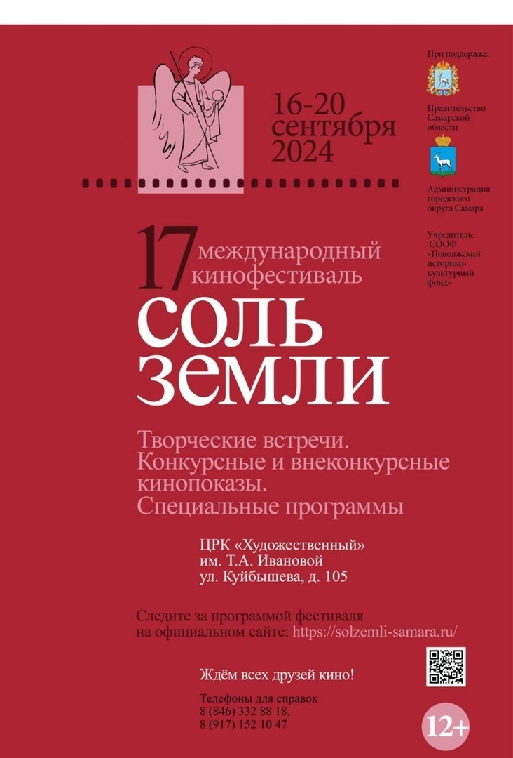 Что готовит нам грядущая неделя. Мой выбор 16–20 сентября, понедельник – пятница ЦРК «Художественный», музеи, библиотеки, клубные учреждения Самары XVII Международный кинофестиваль «Соль земли» 17 сентября, вторник Библиотека № 33 г. Самары, 16:00 Разговоры с Гёте Лекция кандидата филологических наук Леонида Немцева в рамках проекта «Лит-механика» 18–22 сентября, среда – сентября Театральное творческое объединение «Сад» (Похвистнево) Х Открытый фестиваль любительских театров малых городов России Ваш выход 19 сентября, четверг Музей Алабина Открытие выставки Река. Берега. Мосты 2024 год – юбилейный для всех пяти мостов города Самары. Им и посвящена эта выставка 20 сентября, пятница Отдел современного искусства Тольяттинского художественного музея, 18:00 Открытие юбилейной выставки Самарского регионального отделения Творческого союза художников России Буря в стакане 21–22 сентября, суббота – воскресенье Самарский академический театр оперы и балета имени Д. Д. Шостаковича, 18:30 Премьера