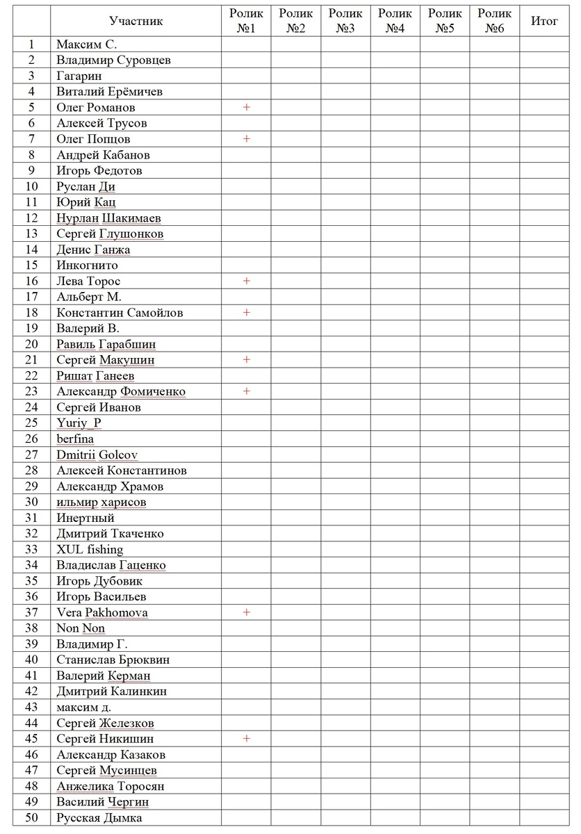 Из ПЯТИДЕСЯТИ изъявивших желание!!! Видимо мы друг друга не поняли. Мне казалось очевидным что начинать играть надо сразу, как только появляется ссылка на игровой ролик. Но подавляющее большинство игроков подумало иначе. Поэтому эту игру я закрываю, правила будут переписаны, дополнены и изменены. Начнём играть сначала!!!