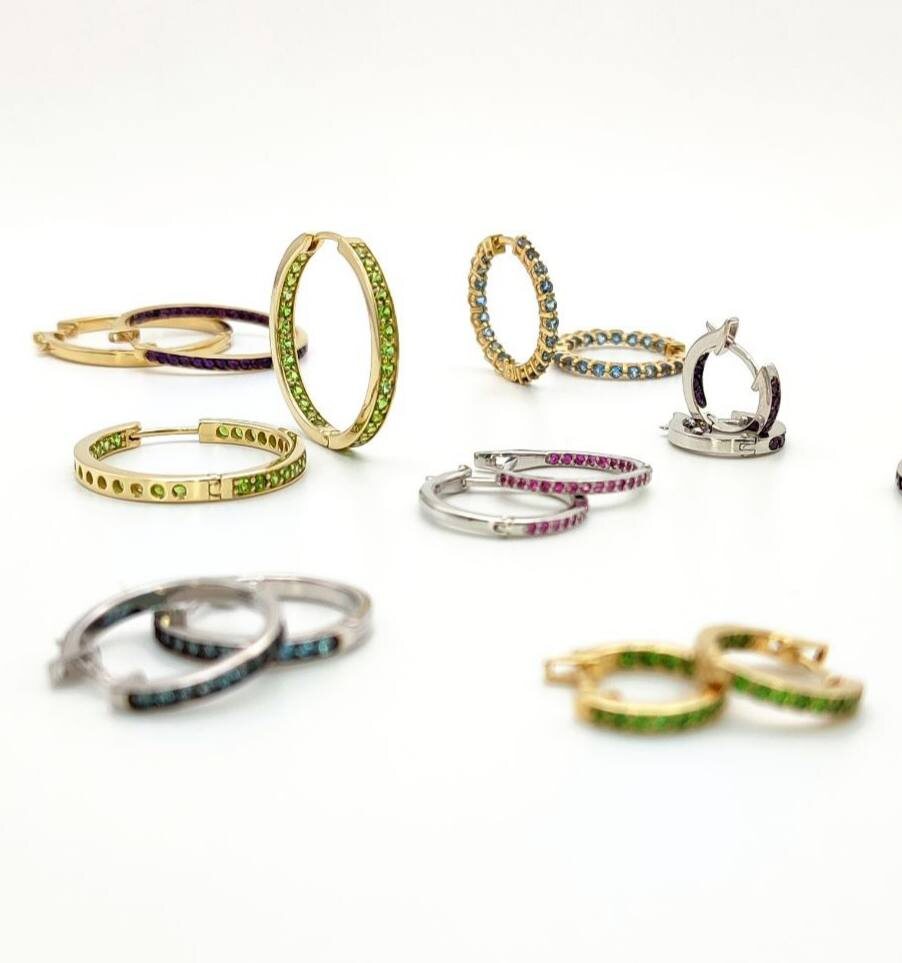 1. Серьги-кольца! Кольца разных размеров, со вставками или без - мастхэв в ювелирном гардеробе. Можно носить кольца разных размеров, играть с цветом минералов или металла, а можно носить их как незаменимую и утонченную классику с любым образом.