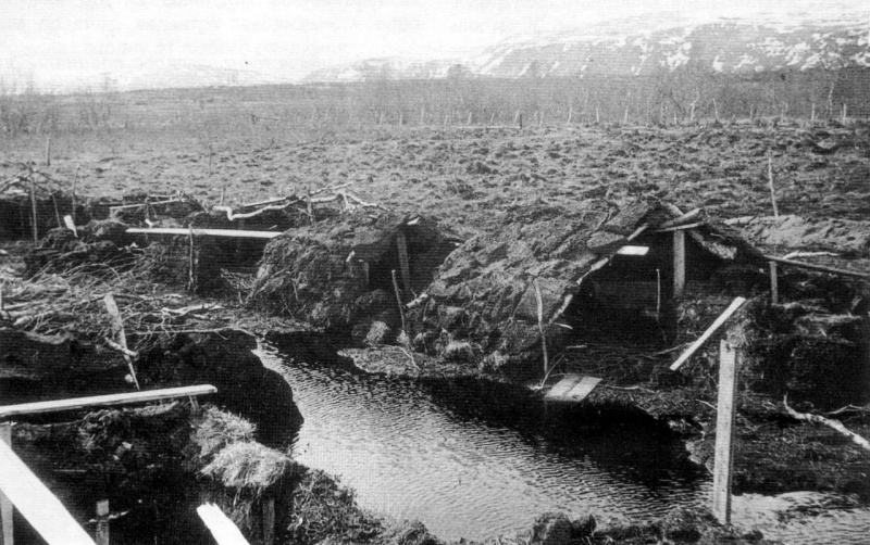 Специфика концлагеря была в том, что его по сути не существовало, была лишь территория, огороженная колючей проволокой. Но был нюанс - это была территория под открытым небом, лишь с несколькими постройками, как на фото ниже, с арктическими ветрами и морозом до минус 40 градусов. В таких постройках жила либо охрана, которой там было столько, что по пальцам двух рук можно пересчитать, либо какие-то их помощники. Остальные узники данного концлагеря пытались спастись от неблагоприятных погодных условий строя себе какие-то шалаши, как на фото выше. Кстати, все фото в статье представлены как раз из данного концлагеря. Но так как на болотистой местности строить особо было не из чего, то они просто рыли себе подобие нор. Тем не менее, на некоторых снимках видно, что для строительства также использовались какие-то доски или стволы от карликовых берез, которые произрастали в округе.