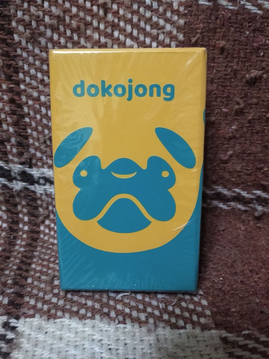 Настольная игра Dokojong представляет собой небольшую коробочку размером 6,7х11см. Играть можно от 2-х до 5-и человек. Время игры 20 минут. В коробочек все сложено очень плотненько и компактненько: Суть игры: у каждого игрока есть своя собака, которой он ни с кем не хочет делиться. Каждый игрок выбирает себе цвет и в соответствии с ним берет пять пластиковых фишек (четыре крестика и одна с изображением собаки) и раскладывает их у себя за ширмой (см. фото выше). Также у каждого игрока есть три штрафных очка с изображением собаки своего цвета и у них две стороны: их цвет и темный цвет (см. фото ниже). Сначала все эти три собачки перевернуты только своим цветом. И есть ещё у каждого игрока по два полукруга, которые в начале игры надо положить крестиками вверх (см. фото ниже). В свой ход игрок может: Три открытых плитки с "Х" у игрока , то он переворачивает один полукруг с тремя крестиками на сторону с веточкой и замешивает свои пластиковые фишки как при подготовке. В случае когда у ка