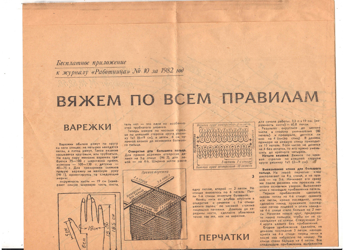 Вяжем по всем правилам варежки и перчатки. "Работница" №10 за 1982 год