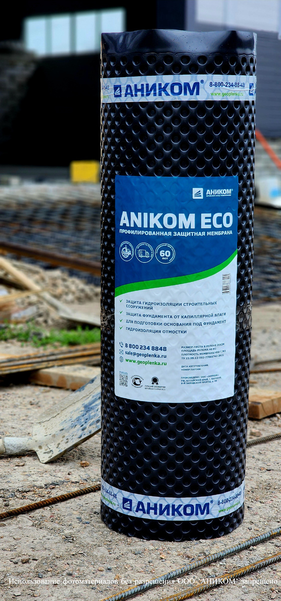 Давайте начнем с того, что же такое гидроизоляция фундамента. По сути, это защита от воздействия влаги на бетонный фундамент. Если не произвести правильно гидроизоляцию, то влага попадет внутрь бетона, и он начнет трескаться и крошиться. И как следствие, мы получим ухудшение прочностных характеристик. Не стоит забывать, что плюсом идет сырость в помещении и появление плесени и грибка. Гидроизоляция, являющаяся барьером, помогает избежать этой проблемы, предотвращая контакт материала с внешней средой. В простонародье гидроизоляцией еще называют материалы, которые используются для защиты от воздействия влаги. Сегодня мы остановимся более подробно на рулонной гидроизоляции или профилированной мембране. Профилированная мембрана – это полотно из полиэтилена высокой плотности (HDPE) применяемое в промышленном и гражданском строительстве. Чаще всего это одно- или двухслойный рулонный материал размером 1*20м или 2*20м. Отличительной особенностью данного материала является наличие на поверхнос