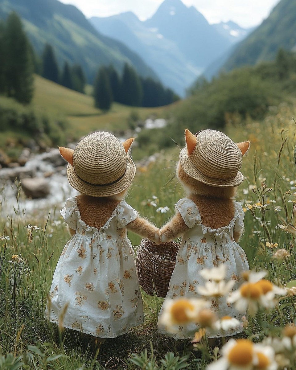Посмотрите на этих очаровательных, романтических кошечек, созданных искусственным интеллектом. Как же замечательно они гуляют полугу, так и хочется присоедениться с ними и не отпускать уходящее лето. Правда же эти кошечки невероятно милые?
