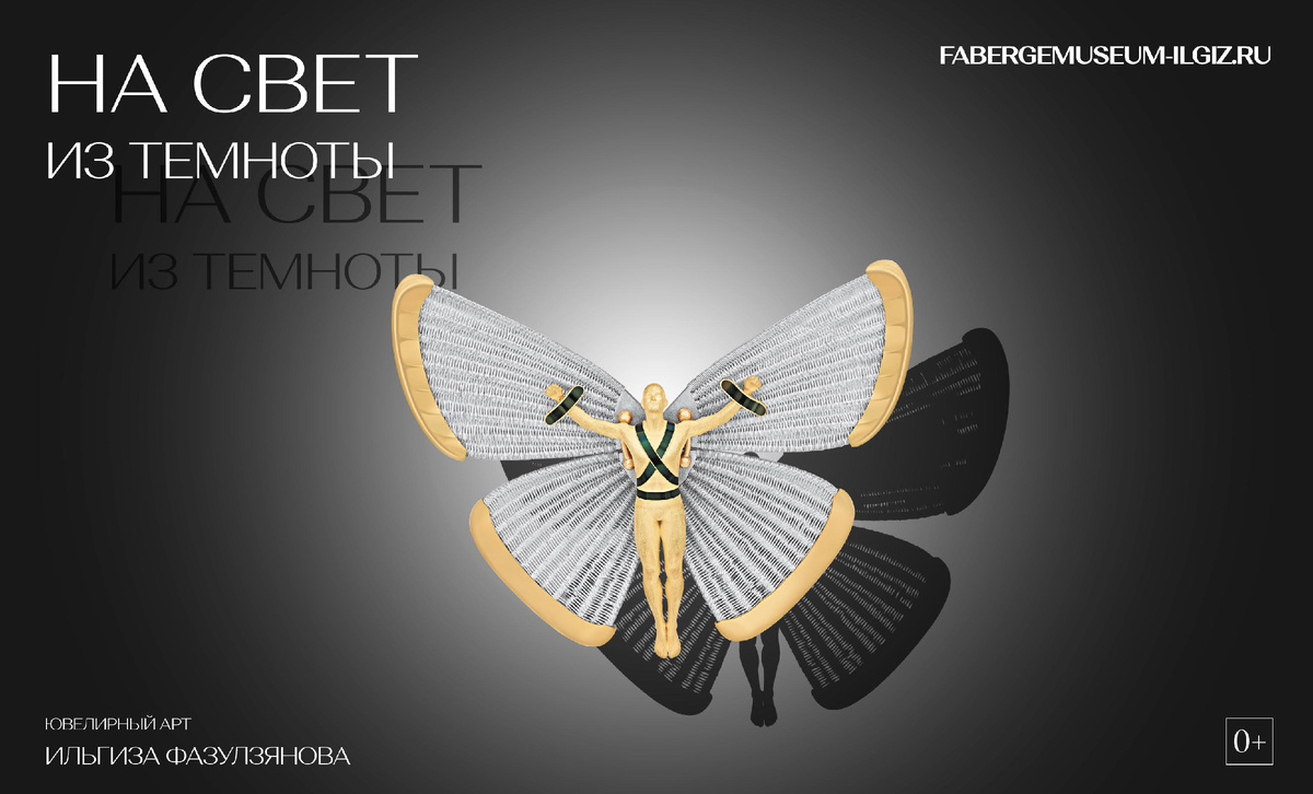 С 18 сентября 2024 по 8 января 2025 в Музее Фаберже пройдет выставка художника-ювелира Ильгиза Фазулзянова «На свет из темноты». Ильгиза Фазулзянова по праву называют ювелирным гением современности, одним из лучших в России. Он стал единственным ювелиром, дважды завоевавшим Гран-при международного конкурса International Jewellery Design Excellence Awards, работы мастера были представлены на престижных выставках по всему миру, дважды экспонировались в Музеях Московского Кремля. Его произведения уже находятся в фондах Оружейной палаты Московского Кремля, в Государственном музее изобразительных искусств Татарстана в Казани, а также в Фонде Van Cleef & Arpels в Париже. Работы автора выставляют на торги знаменитые аукционные дома Christie's и Bonhams. Идея проекта «На свет из темноты» — это путешествие в Храм души, путь познания и поиск себя через образ бабочки, стремящейся к свету. Ювелирные произведения сопровождаются цитатами автора и его размышлениями о трансформации общества, о свете и