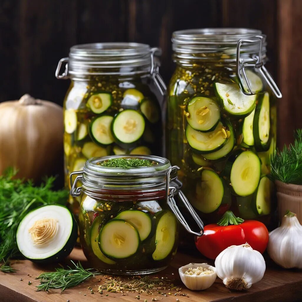 5. **Заливка**: Залейте кабачки горячим маринадом, оставляя немного свободного пространства до края банки.