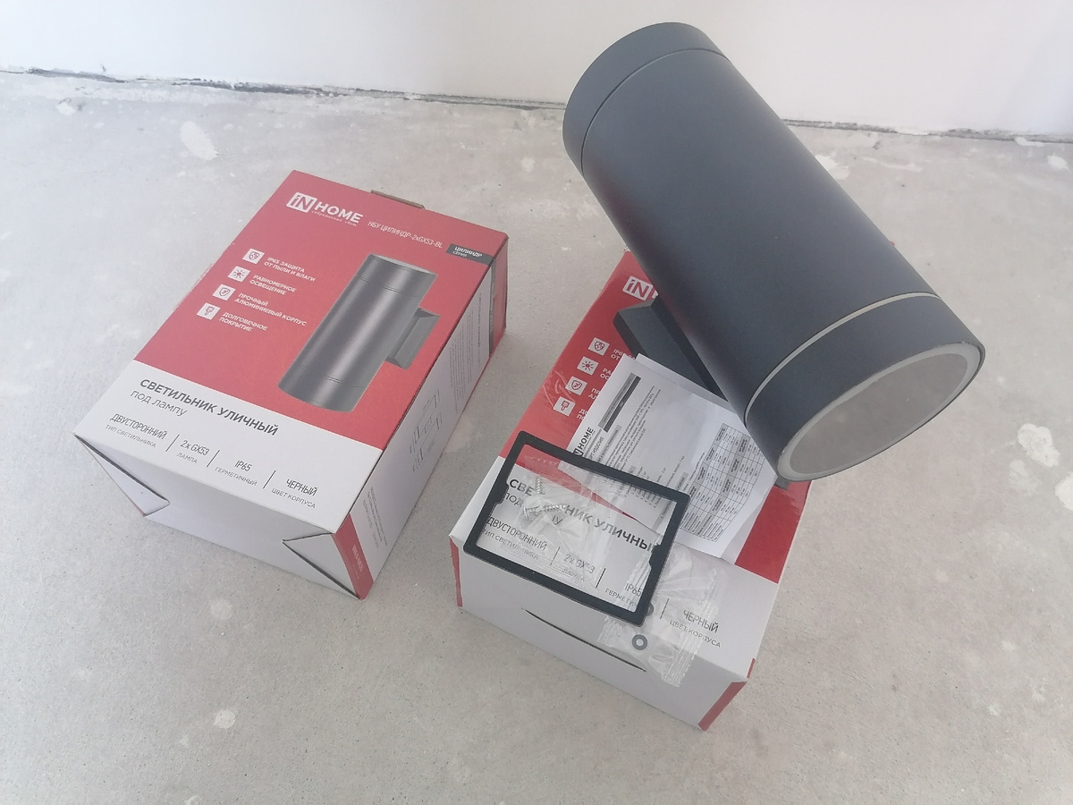 Давно я не писал про свою стройку. За это лето 2024 года сделано визуально не много. Это была долгая и кропотливая работа, она и отняла столько времени. Пришлось даже корректировать планы в этом сезоне, отказаться в этом году от строительства хозблока. Но результатом я доволен. Расскажу про недорогой, но красивый элемент на фасаде дома – светильники. Их выбор на сегодня огромный. Я приобрел такие: Покупал на Озоне, там дешевле. Герметичные, с лампами GX53 (2 шт. на светильник). Светят вверх и вниз. Будут располагаться по сторонам от центрального окна лестничной площадки дома. Проводку по стене под них провел еще до монтажа фасада, в прошлом сезоне. В этом году установил блок с розеткой и выключателями. Три выключателя: подсветка фасада этими светильниками, освещение крыльца и включение прожекторов для освещения территории перед домом. Выключатели и розетки выбрал наружные, т.к. внутри пенопласта (утеплителя) монтировать их в коробках не захотел в целях пожарной безопасности. Через 15-2