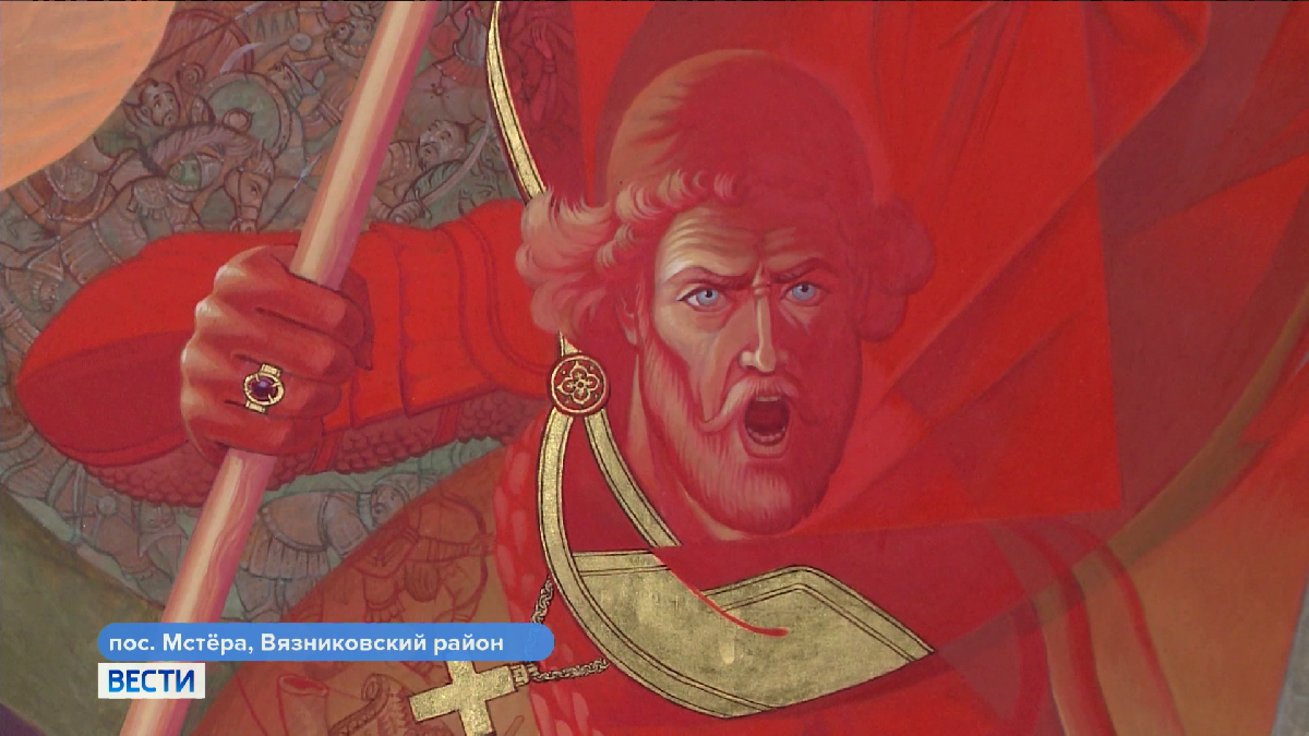 А вот как создавался триптих, подробно рассказывали "Вести". Наша съемочная группа побывала в мастерской Дениса Молодкина во Мстёре. Размеры триптиха - 2 на полтора метра.