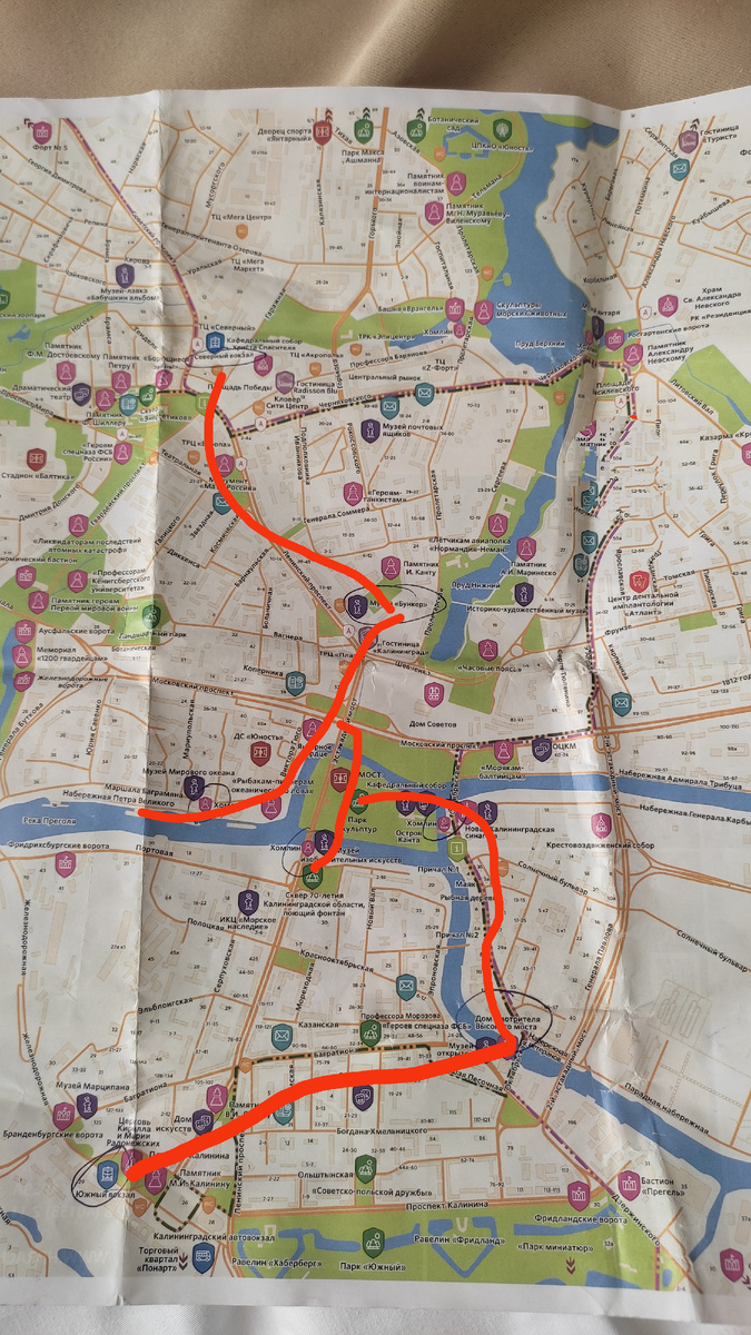 Добрый день всем! Воскресный день мы решили провести в Калининграде. Разработали маршрут по рекламной туристической карте. Приехали на "Ласточке" на Северный вокзал, конечная точка маршрута- Южный железнодорожный вокзал. Шли неспешно, разглядывая всё вокруг. Остановились около лавки, рассуждая, как крепятся бруски, если не видно крепления( мы же девочки😂, которые дружат с инструментами) Первая интересная локация- это Площадь Победы. Кафедральный собор Христа Спасителя, построен в стиле владимиро-суздальского храмового зодчества. Заинтересовали нас необычные деревья по периметру площади, а подойдя поближе рассмотрели горшки с геранью😅. Шли дальше по Ленинскому проспекту. Дома выдержаны в одном стиле. Здесь есть тоже магазин Барахольщик, зашли, ассортимент примерно как и в Зеленоградске. Взяла на заметку такие пробки. Встретили и Иваново. Первым пунктом нашего путешествия был музей "Бункер". Это место, где в 1945 году находилось немецкое командование Кёнигсберга, комендант
