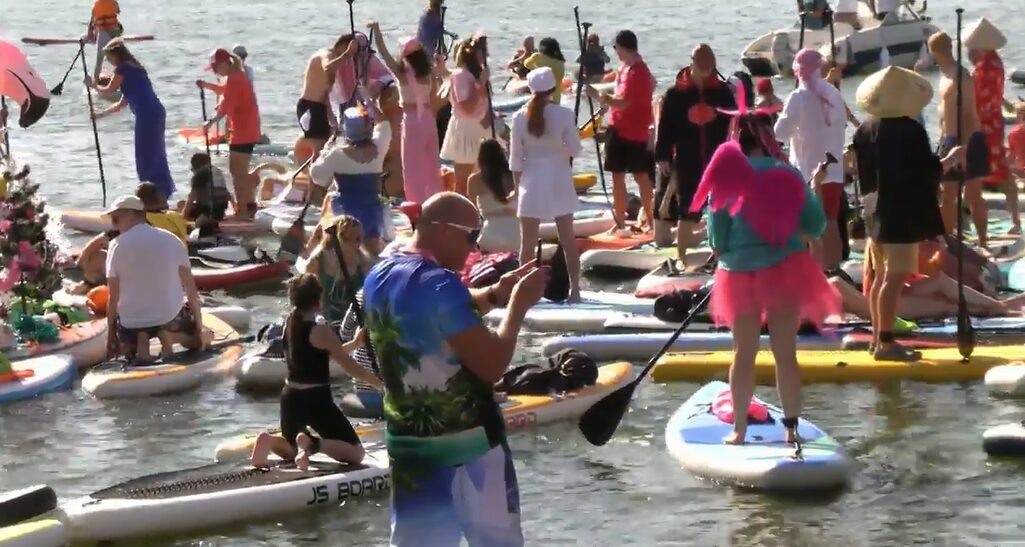 Более тысячи москвичей приняли участие в костюмированном сап-заплыве в акватории Строгинского залива в воскресенье. Среди участников мероприятия можно было встретить Деда Мороза со Снегурочкой, шейха на надувном верблюде, Посейдона и Дэдпула, сплавляются по воде. Двукратная чемпионка Европы по сап-серфингу Наталья Новицкая рассказала, что подобные заплывы привлекают внимание большой аудитории. «Мы сегодня видим здесь очень много участников, многие в прекрасных костюмах, приехали целыми семьями, кто-то выходит на сап-досках с собаками — все это очень весело и интересно», — отметила девушка. Участница мероприятия Дарья впервые пришла на заплыв и осталась довольна. «Очень все здорово, хороший солнечный день, прекрасная атмосфера, улыбки сплошные, просто праздник. Спасибо за этот праздник», — поделилась она. В этом году костюмированный сап-заплыв при поддержке Московского Департамента транспорта прошел уже во второй раз. Длина маршрута составила пять километров вдоль побережья залива.