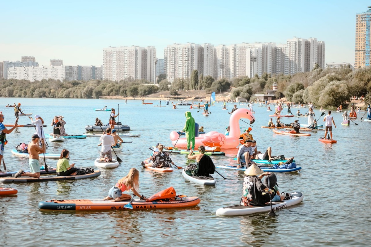 Более 1000 человек приняли участие в костюмированном сап-заплыве московского транспорта. На выходных в Строгине горожане слушали хорошую музыку, пробовали блюда полевой кухни, много фотографировались и, конечно же, плавали на сапах. Делимся фотографиями жителей столицы в самых ярких костюмах. Некоторые пришли на заплыв с домашними питомцами.