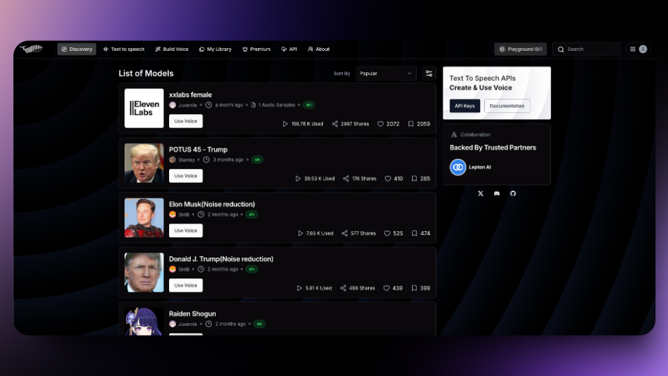 Хотите голос Илона Маска, Дональда Трампа или даже Чжун Ли из Genshin Impact? В Fish уже есть такие модели! 📝 Просто введите текст