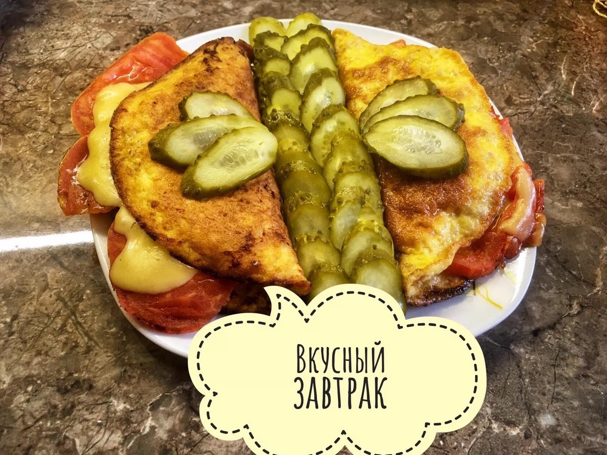 ☀️☀️☀️ Утро! Должно быть вкусным и позитивным. 👩🏻🍳 «Ленивый бризоль» 🍴 4 яйца взбить венчиком с небольшим количеством любого фарша до однородной массы, посолить, поперчить. 🍴Далее яичную смесь делим визуально пополам и обжариваем на небольшом огне под крышкой до готовности. 🍴 На одну половинку кладём ломтики помидоров, слайс ветчины, кусочек сыра. Накрываем второй частью. Прижимаем немного. 🍴Под крышкой готовим до расплавления сыра. И сразу подаём сытный завтрак. Можно подать с огурчиками. 🍴Приятного всем!!