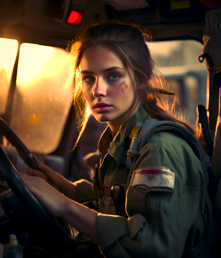 Встреча на линии фронта Вера сидела за рулем скорой помощи, крепко сжимая руль обеими руками. Этим августом жизнь жителей Курской области разделилась на до и после. Ветровое стекло было испещрено трещинами от осколков снарядов, но она продолжала ехать, несмотря ни на что. В салоне стояли крики раненых, которых они везли в госпиталь. Вера взглянула в зеркало заднего вида, встретившись глазами со своим отражением. Усталость читалась в ее глазах, но лицо оставалось спокойным и решительным. Она не могла позволить себе потерять контроль над ситуацией. Вдруг раздался громкий взрыв – машина подпрыгнула, и Веру бросило вперед. Остановившись, она выглянула в окно, чтобы оценить повреждения. Сердце бешено колотилось в груди. Рядом с ней остановился военный джип, из которого вышел молодой человек в камуфляже. Его глаза блестели, когда он смотрел на нее. Вера почувствовала тепло внутри себя, несмотря на холодный воздух. — Как вы? – спросил он, помогая ей выбраться из машины. Она улыбнулась в ответ