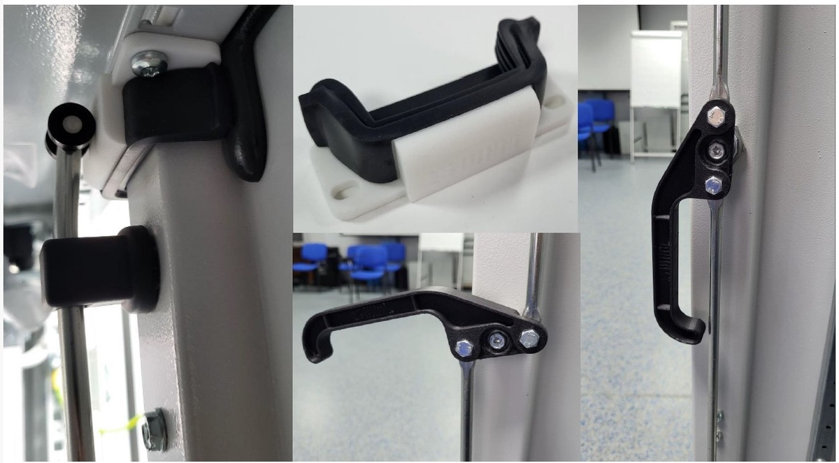 Замочная система MPD (новое решение) – кронштейн, резиновое уплотнение, тяги, ручка.