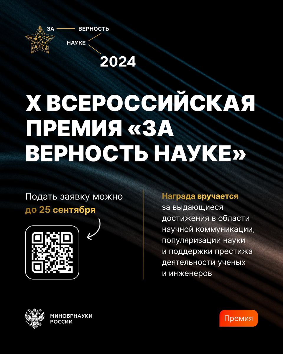 Прием заявок на Х Всероссийскую премию «За верность науке» открыт до 25 сентября