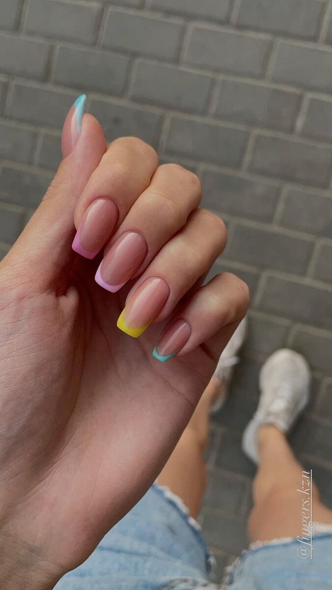 Французский маникюр — это не только классический белый френч. Существует множество вариаций, которые позволяют проявить креативность и индивидуальность. Вот несколько креативных идей, которые помогут вам выделиться: 1. Цветной френч - Используйте яркие и насыщенные цвета вместо традиционного белого. Например, розовые, голубые или зеленые кончики. 2. Геометрические узоры - Добавьте геометрические элементы, такие как треугольники или полосы, на кончики ногтей или в области кутикулы. 3. Френч с градиентом - Создайте плавный переход цвета от основания ногтя к кончику. Это может быть как однотонный градиент, так и сочетание нескольких цветов. 4. Металлический френч - Используйте металлические лаки или фольгу для создания блестящих кончиков. Это добавит изюминку вашему маникюру. 5. Френч с блестками - Нанесите блестки только на кончики ногтей или создайте эффект омбре с блестками. 6. Рисунки и узоры - Добавьте маленькие рисунки или узоры на кончики ногтей, наприм