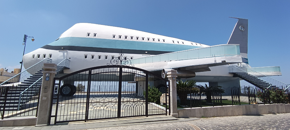 Я уже однажды тут про него писала. Но тогда я только собиралась к нему ехать и фотки были не мои, из сети. Потом, в конце апреля прошлого года, я до него добралась и пофоткала. Но ночью того же дня мой телефон вместе с фотографиями за последние полгода между нападениями. Прошел год с небольшим. Мы с коллегой собрали небольшую группу туристов из живущих в Ливане русскоговорящих людей и поехали в район, который сами пока не очень хорошо знаем. Я была там один раз, Лена некоторые объекты раньше не видела. В общем, организовали рафинированную экспедицию. Одним из объектов, которые мы смотрели, и был дом самолет. Да, это дом. В нем можно жить. Еще один этаж под самолетом, невидимый. Дом был построен в семидесятые годы. Про поселок, где он стоит, говорят, что там надо согласовывать проекты построек. Могут не разрешить. Когда-то давно в результате долгих тяжб работавшим на землях поселка людям удалось получить эту землю в собственность. И они там себе с тех пор город сад обустраивают. В