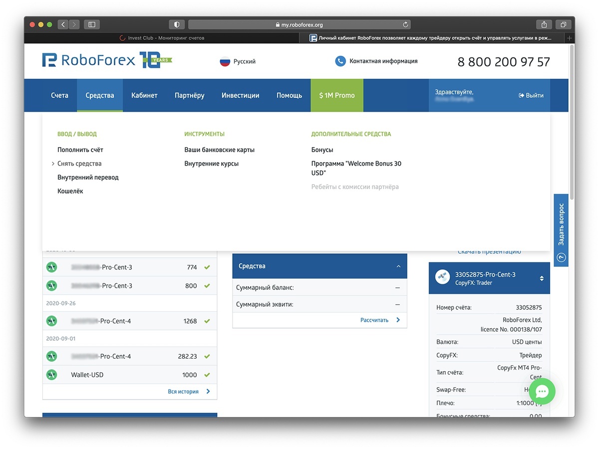 • На главной странице RoboForex нажмите "Средства" и выберите "Снять средства". Шаг 2: Выбор платежной системы