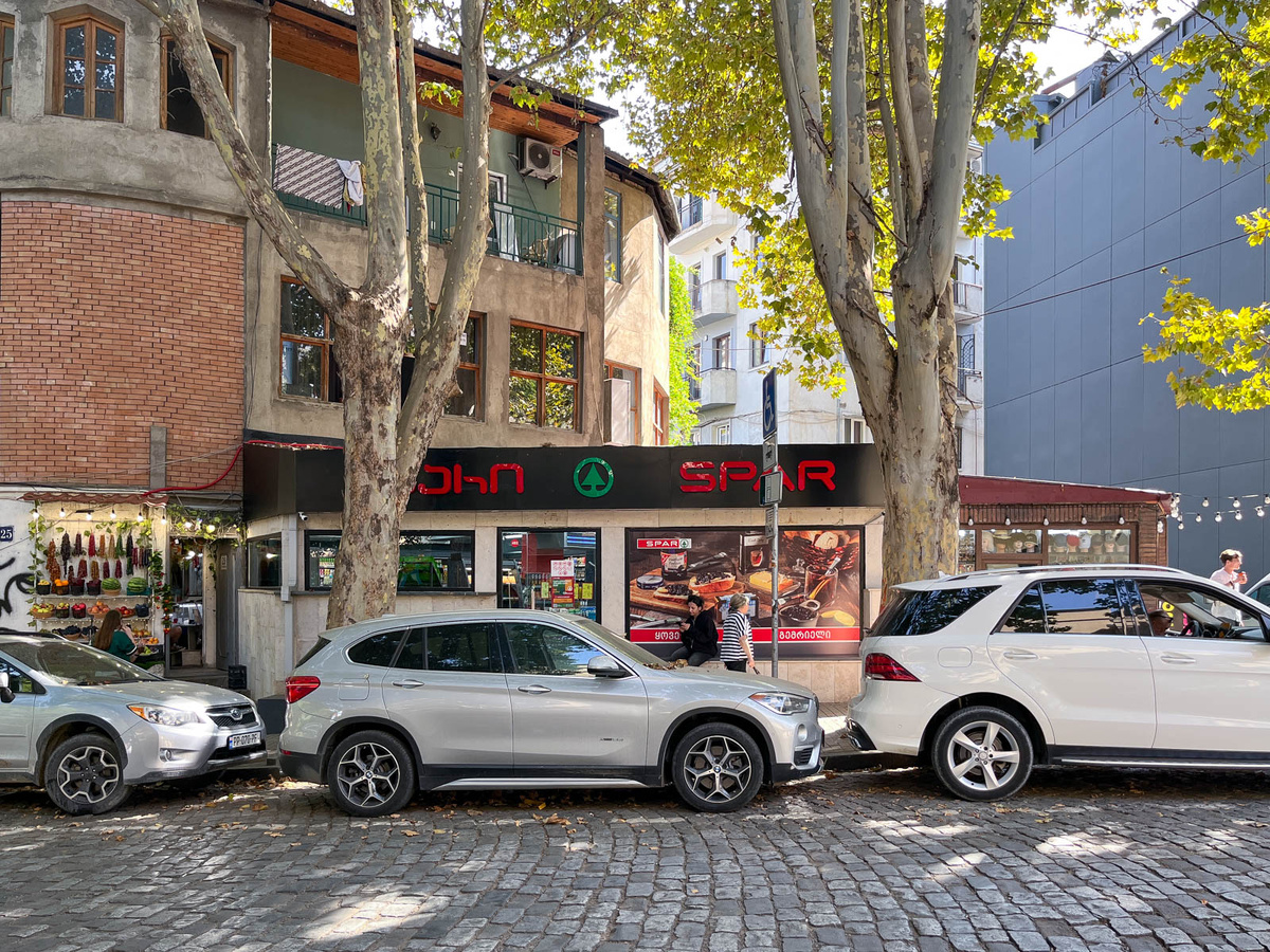 И как там живут наши релоканты? Все-таки богатые эти грузины. Во время туристической поездки по Кавказским минеральным водам, Грузии, Турции и Армении я заглянул в минимаркет в Тбилиси и ошалел от ценообразования. Больших гипермаркетов в центре столицы Грузии не наблюдается, а супермаркет я видел только один - Карфур на улице Атонели. Но в этот раз я туда не ходил. Самые популярные магазины в Тбилиси - Спары. Нужно понимать, что Спар это не совсем сеть, а скорее франшиза. И купить ее может кто угодно. Нужно только соответствовать определенным стандартам. В центральной части Тбилиси множество маленьких спарчиков. Вот этот я сфотографировал на улице Котэ Афхази.