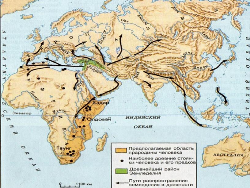 Появление земледелия и скотоводства это очень важный этап в эволюции человека, археологи считают, что с появлением земледелия и скотоводства происходит переход от мезолита к неолиту. Понятия это условные, везде это происходило по разному, но даже несмотря на эту путаницу от такого подхода не отказываются. Если предки человека появились в Африке, то земледелие возникло отнюдь не там. Также есть такой момент - если человек разумный оформился как вид примерно 40 тыс. лет назад, то почему земледелие появилось так поздно. Дело в том, что примерно 11 тыс. лет назад закончилась геологическая эпоха под названием плейстоцен, которая выглядела примерно так: В ледниковый период, длившийся с примерно 100 тыс. лет назад ни о каком земледелии речи еще не шло по чисто техническим причинам. По этим же техническим причинам в первую очередь потеплело на Ближнем Востоке. Оттуда и пошло распространение новшеств. Переход от присваивающего (охотники и собиратели присваивают ничье) к производящему хозяйств