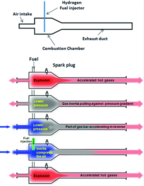 Вообще-то он должен был называться ЭФФЕКТОМ КАДЕНАКИ (Kadenacy effect), но, сами понимаете, торжество английского языка задушило в этом эпониме греческое начало. Суть же явления довольно проста: когда выхлопные газы покидают цилиндр двигателя внутреннего сгорания и направляются в выхлопную трубу, там возникает перепад давления в сторону понижения. Это способствует поступлению в цилиндр свежего заряда воздуха или топливовоздушной смеси. Что можно можно и нужно использовать, дабы минимизировать энергозатраты на обеспечение работы топливного и воздушного насосов. Но вовсе обойтись без них, увы, не получится, ибо разрежение всё-таки недостаточно большое. Обнаружено это явление было в 1933 году, и уже тогда его попытались использовать в двухтактных поршневых двигателях скоростных мотоциклов. А ещё чуть позже стали применять и при создании импульсно-реактивных двигателей, в частности, ракеты ФАУ-1. Напомню, в этих изделиях есть два канала, соединенных с зоной дефлаграции: "впускной" (очень