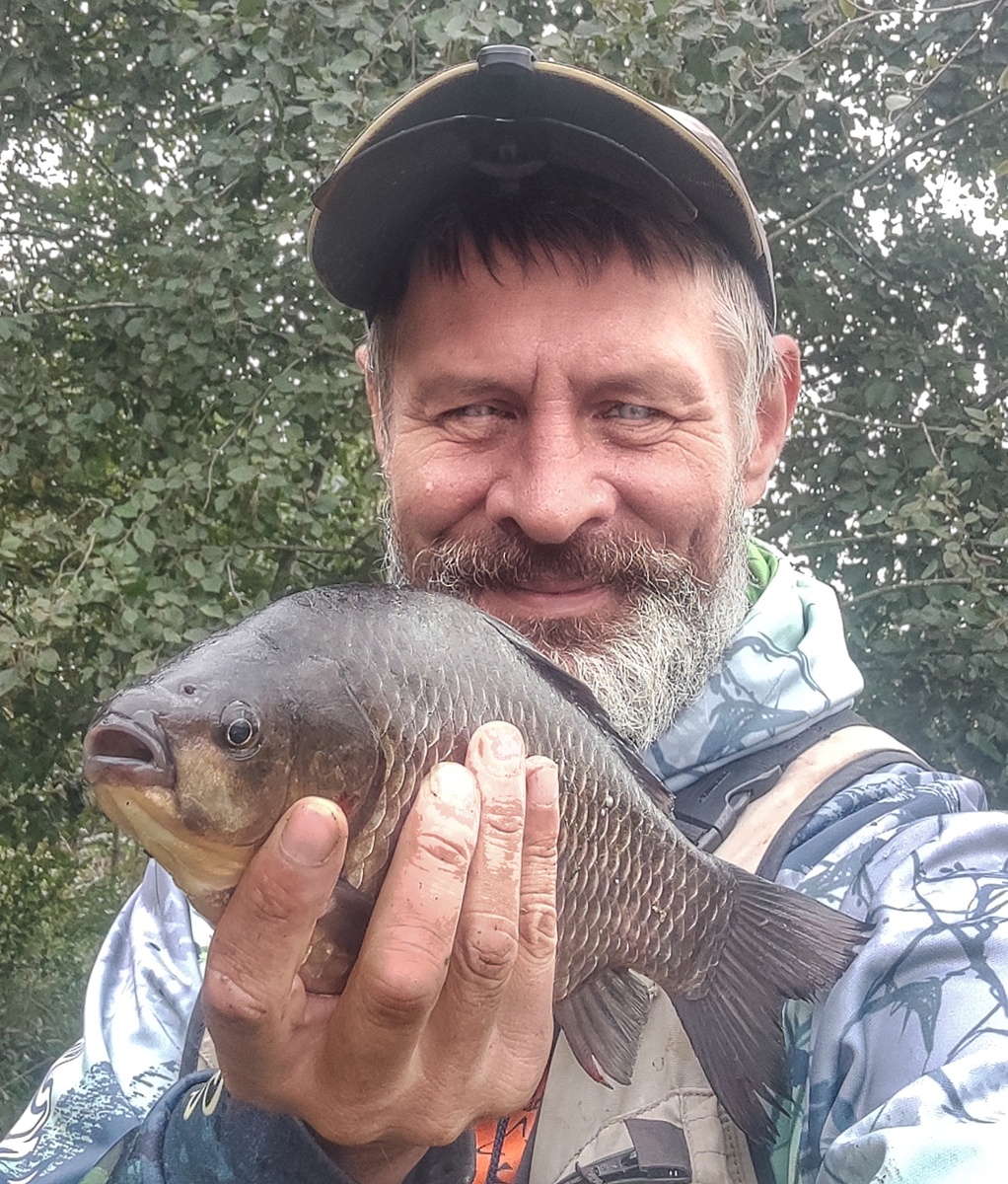 И только один карась за это утро поймался достойного размера, граммов 800 примерно. Красавец и боец!