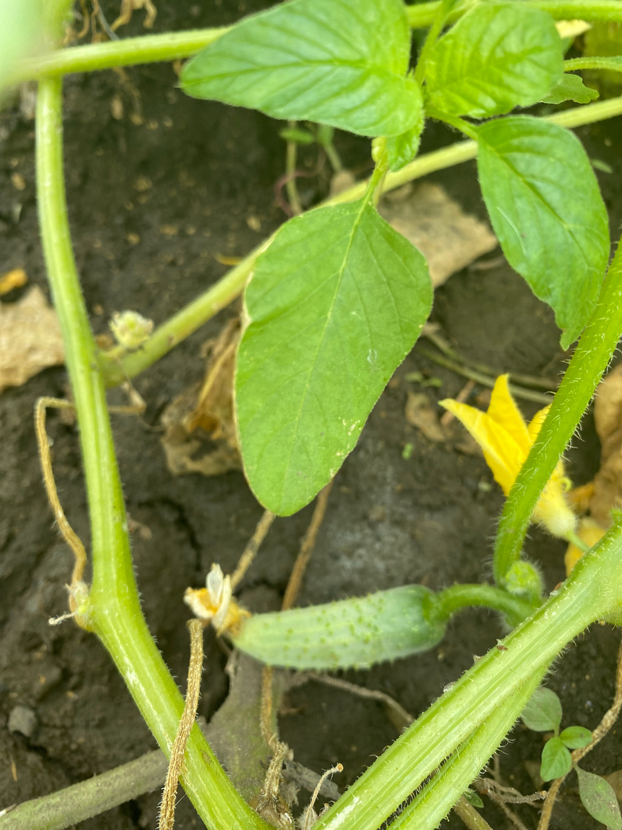 Морковь и свекла не пробились через застывшую корку земли. Немного фасоли дают так и не вытянувшиеся вверх кусты туршевой фасоли, да радуют глаз выглядывающие из листвы маленькие арбузики.