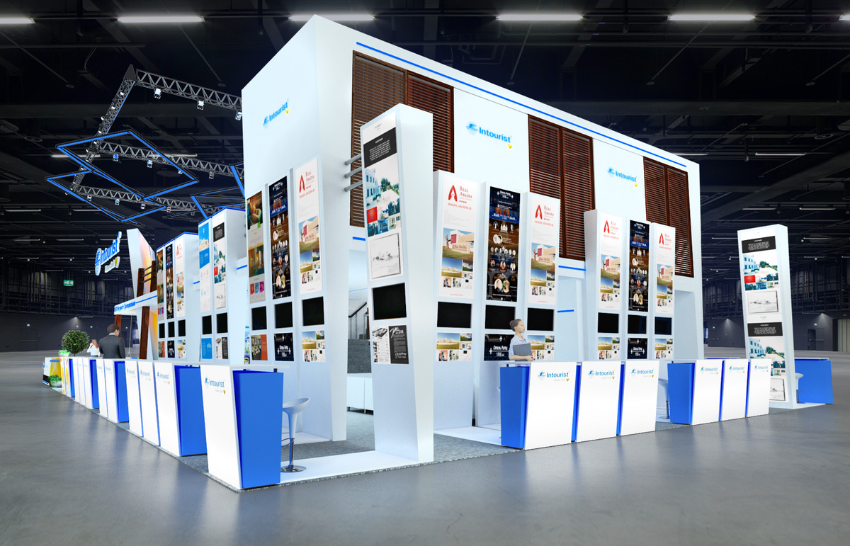 - Многоуровневые конструкции: Стенд, работающий в нескольких уровнях (например, с верхними баннерами, средними дисплеями и нижними презентационными столами), создаёт больше точек контакта.