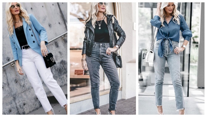 Современная мода может подчеркнуть красоту женщин любого возраста. Мы подготовили подборку элегантных нарядов специально для зрелых дам, в которых женщины 40+ будут выглядеть превосходно. Светлый длинный жакет, белая майка, классические джинсы прямого кроя и высокие сапоги в ковбойском стиле - идеальный многослойный образ, рекомендованный стилистами для женщин 40+. Оверсайз рубашка цвета хаки гармонично сочетается с белыми джинсами подпоясанными черным контрастным ремнем, а также золотыми босоножками в минималистическом стиле. Куртка-косуха насыщенного трендового цвета + майка в бельевом стиле с элегантным кружевом или базовый топ + джинсы прямого кроя с высокой посадкой — беспроигрышное сочетание вещей, которое украсит собой модницу зрелого возраста. В качестве обуви к данному луку стилисты советуют добавлять туфли-лодочки, сабо, босоножки с тонкими ремешками, а также ботильоны в звериный принт с открытым мысом. Многослойные аксессуары, а также сумки с массивными цепочками отлично зав